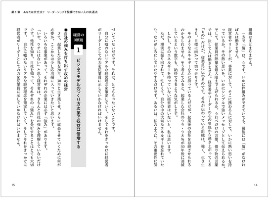 小手先の「理論」や「ノウハウ」だけでは絶対に人は動かない。新進企業の経営者として5年で借金2億円の完済と200%成長を同時に実現し、5年後には400%成長・年商50億を目指す著者が、死に物狂いで掴んだリーダーシップの極意で、あなたの組織を奮い立たせよ!