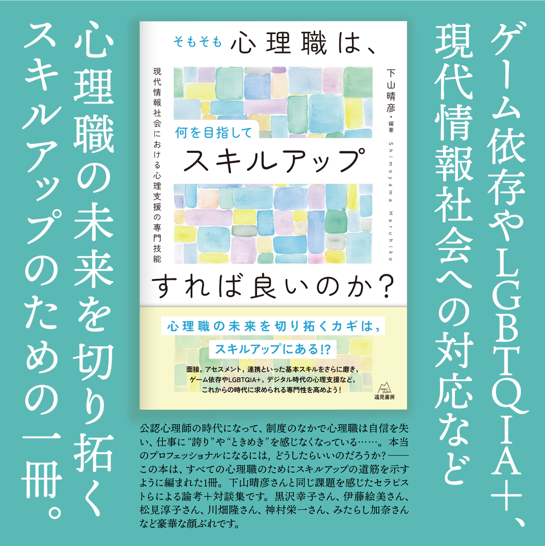 ──この本は,すべての心理職のために,スキルアップの道筋を示すように編まれた1冊で,下山晴彦さんと,同じような課題を感じたセラピストらによる論考+対談集です。黒沢幸子さん,伊藤絵美さん,松見淳子さん,川畑隆さん,神村栄一さん,みたらし加奈さんなど豪華な顔ぶれです。